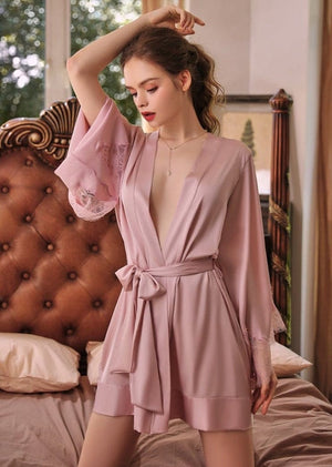 The wide sleeves and belt closure create a flattering silhouette for moments of refined relaxation. Perfect for morning rituals or intimate evenings.